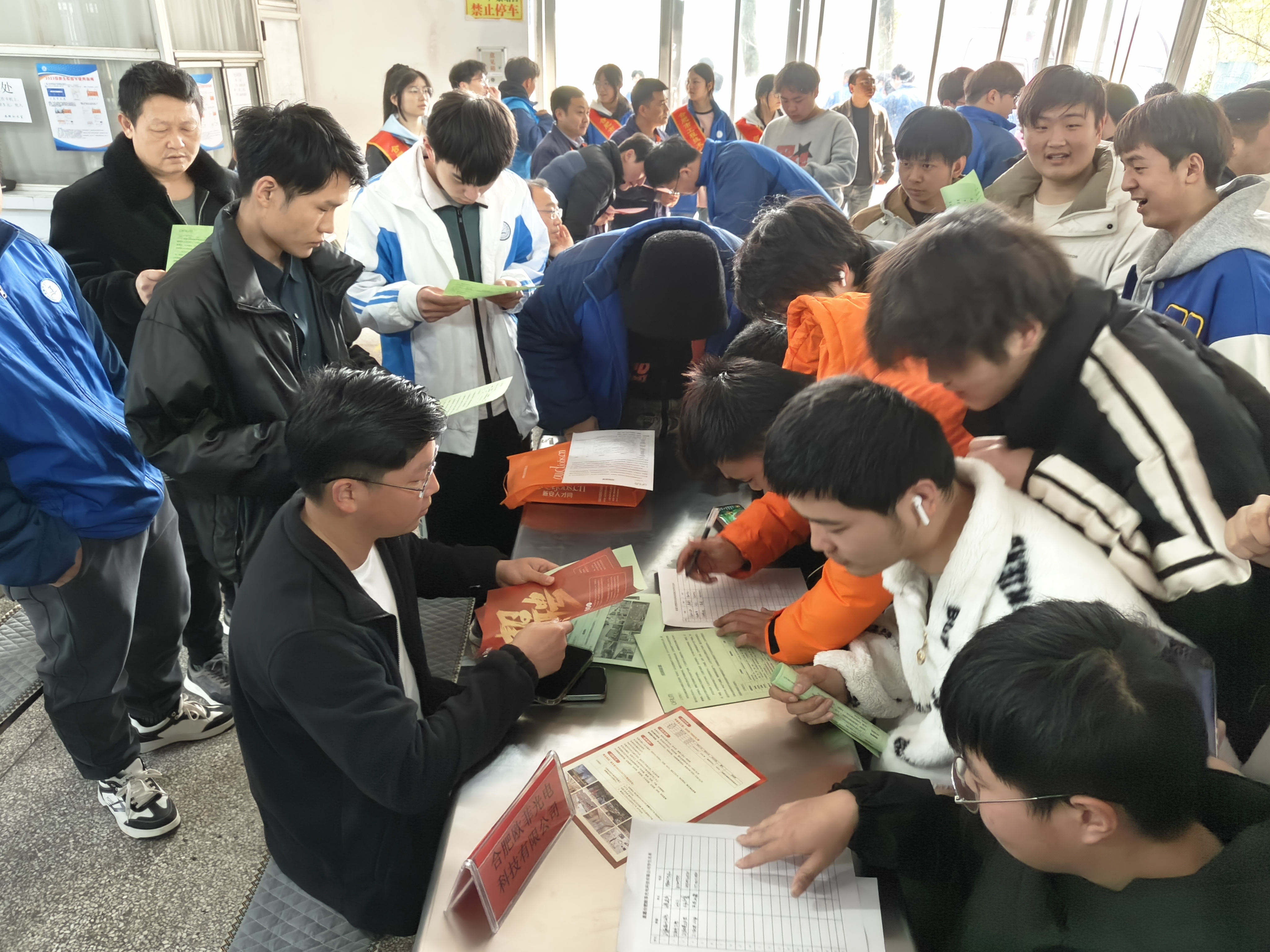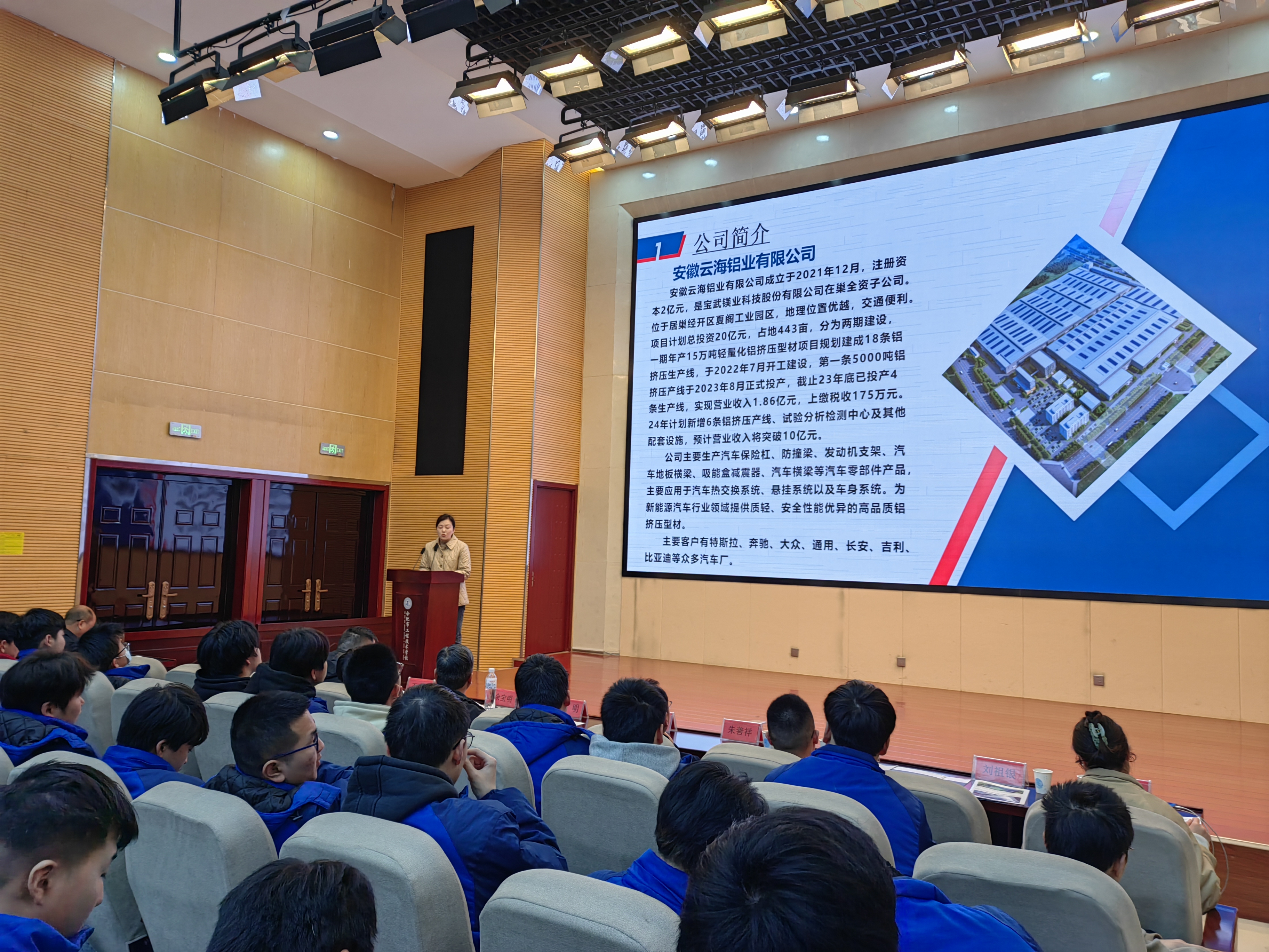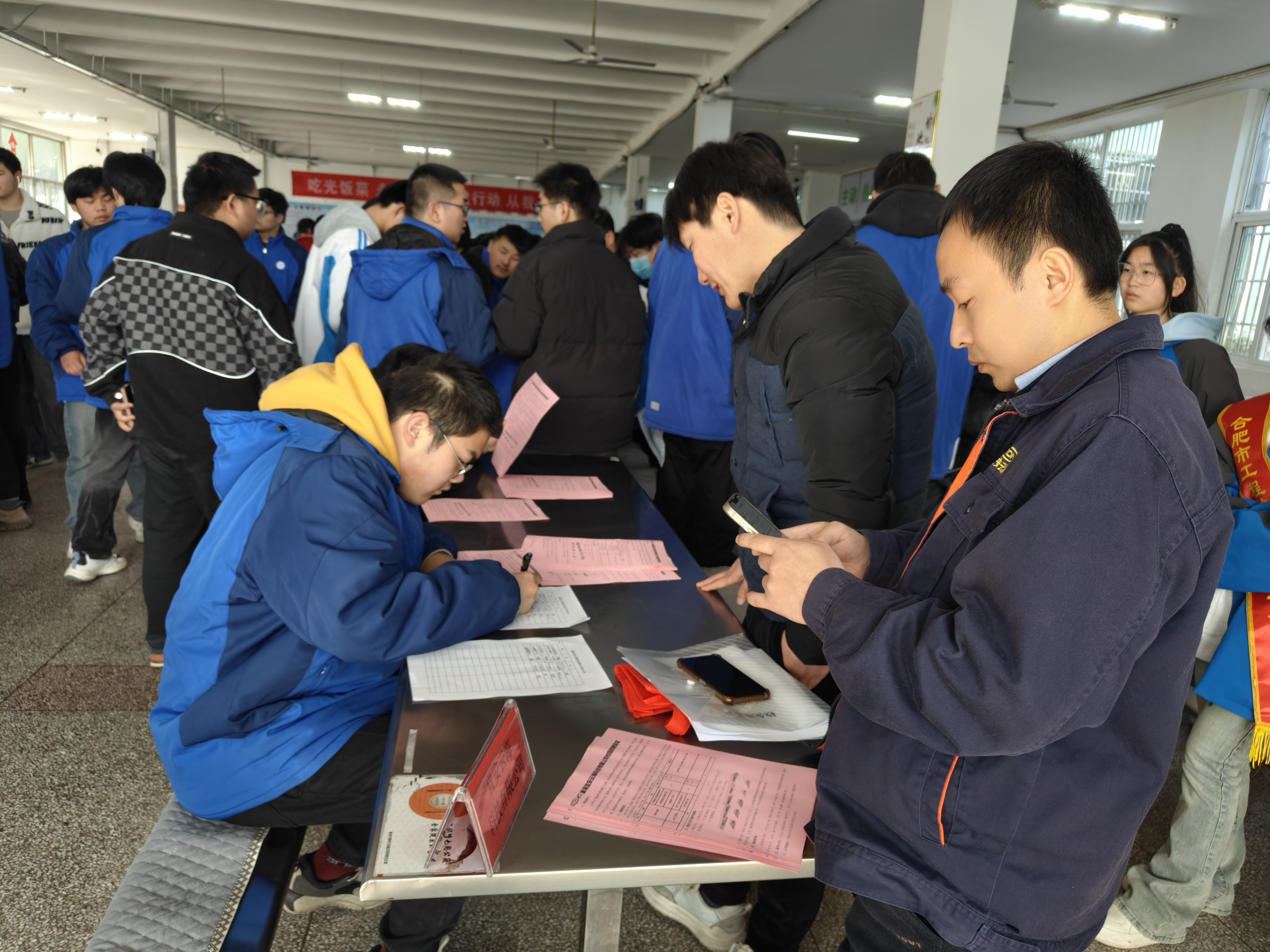 八家企业代表分别进行宣讲。从企业简介、招工需求等方面详细介绍了企业及用工情况。宣讲完毕后,企业代表们在学生食堂与学生进行对接。学生们积极和企业代表们交流互动,询问薪资待遇、工作环境等问题,并登记意向表。