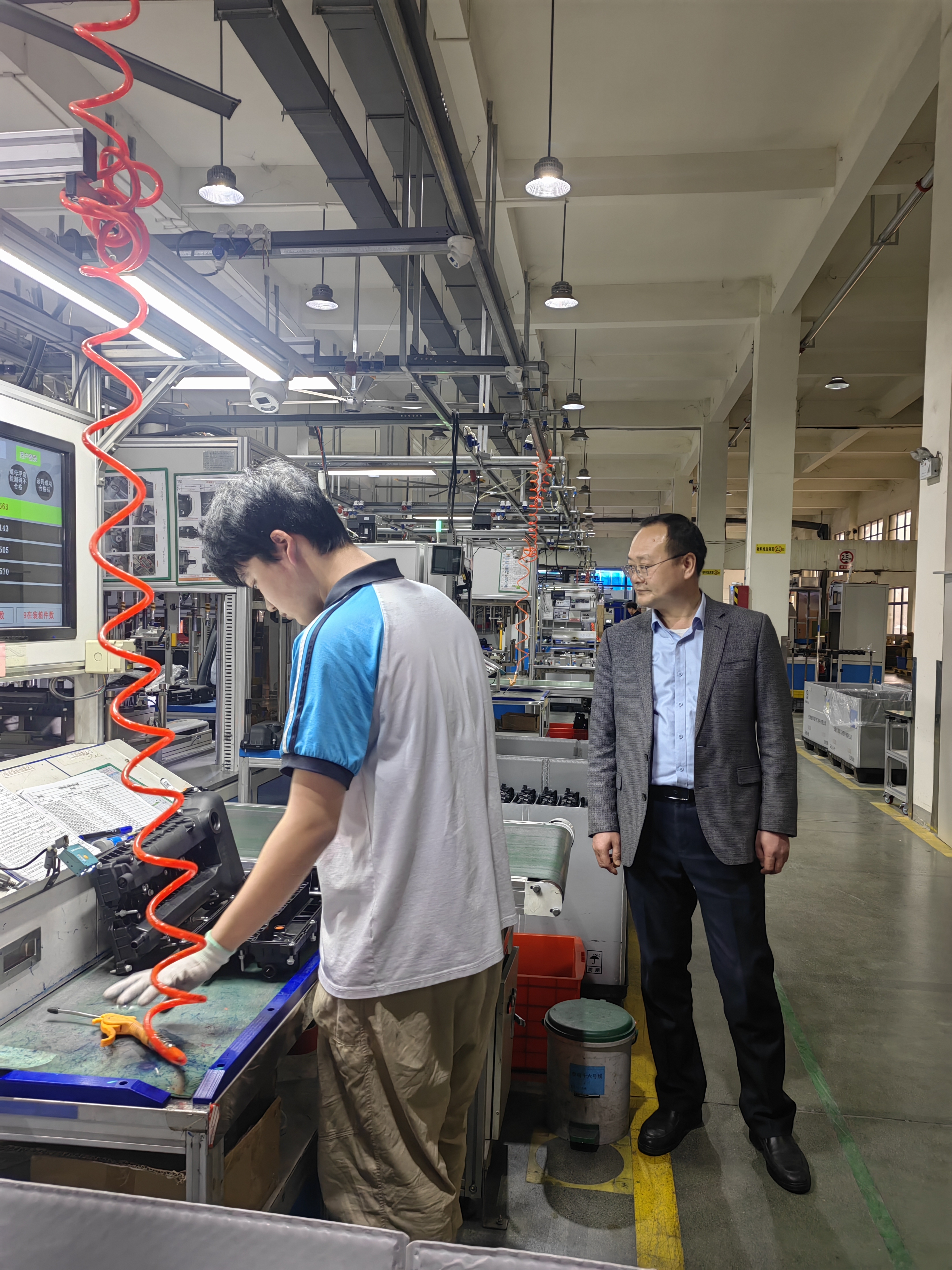 校领导一行首先深入企业生产一线,走访学生实习岗位,实地查看工作环境、操作流程及安全规范,并与在岗学生亲切交流,详细了解其岗位适应情况。