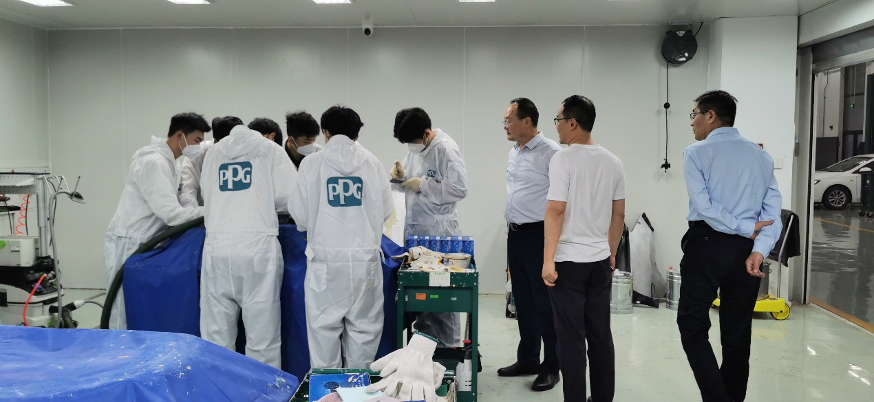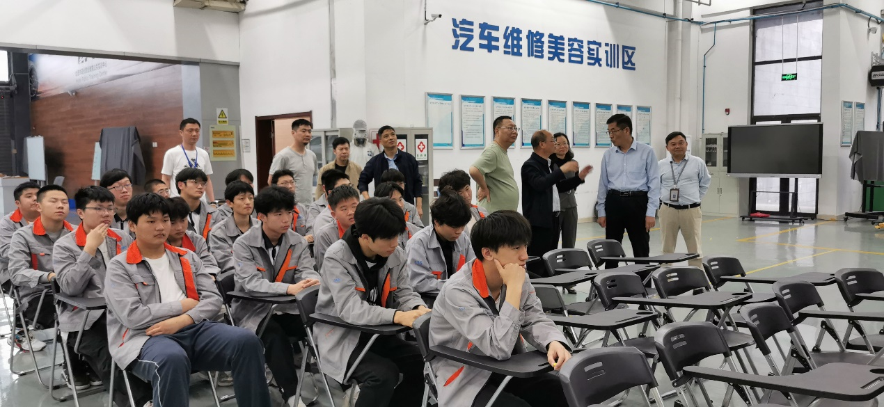 在实训中心相关领导陪同下,mg冰球突破豪华版一行参观了实训中心,实地了解汽车技术、汽车钣金、汽车维修美容等实训中心基本情况,并看望了前期来实训中心学习的学生和带队教师。
