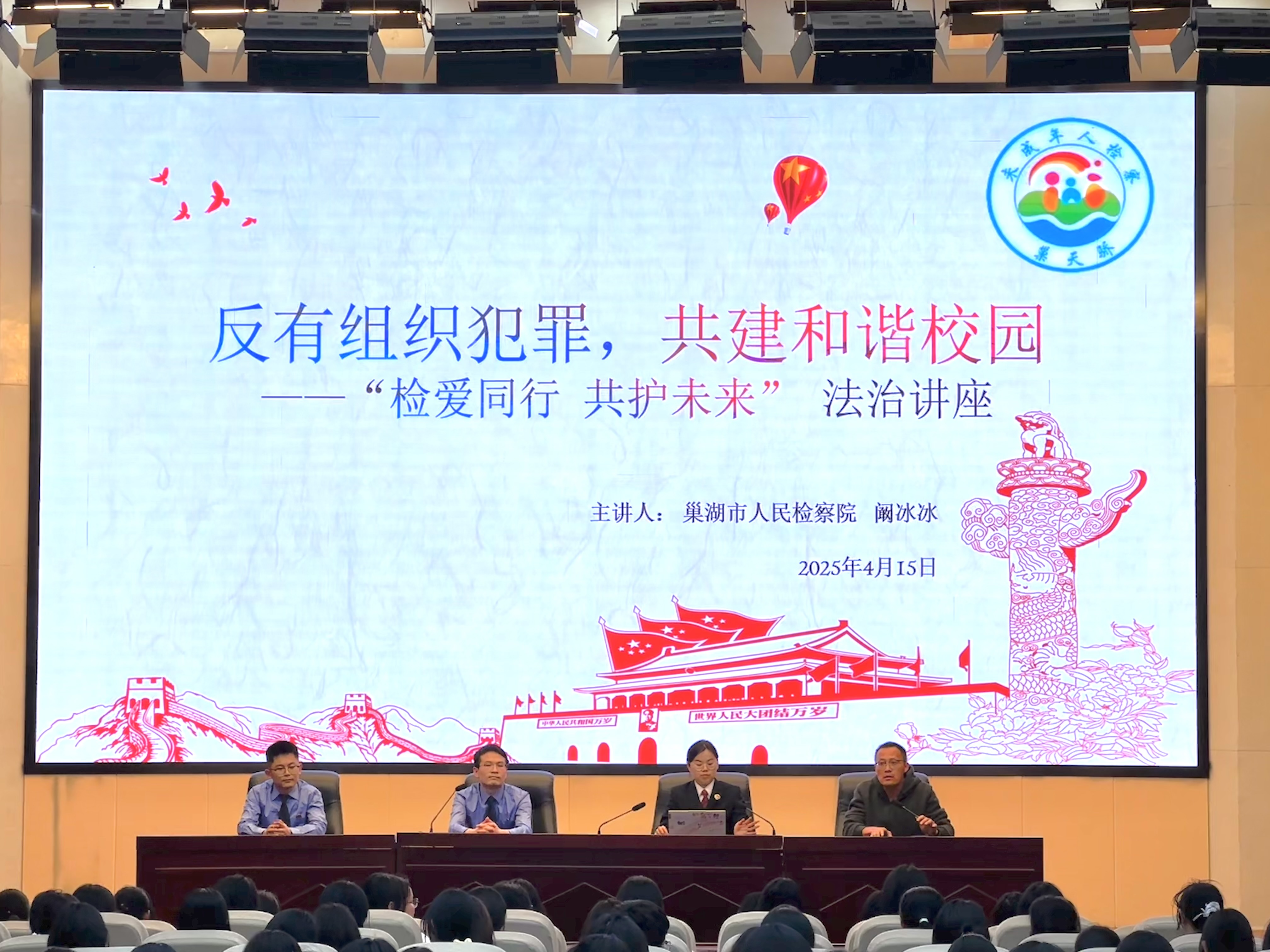 4月15日下午,mg冰球突破豪华版下载邀请巢湖市检察院阚冰冰检察官到校开展未成年人法治讲座,以“检爱同行,公护未来”为主题,通过PPT展示、视频播放、案例解析等多种形式,深入浅出地讲解了国家安全法的相关法律法规、国家安全的概念、危害国家安全的行为及后果等内容。并结合校园实际,分析了校园内可能存在的国家安全风险点,并给出了相应的防范建议。