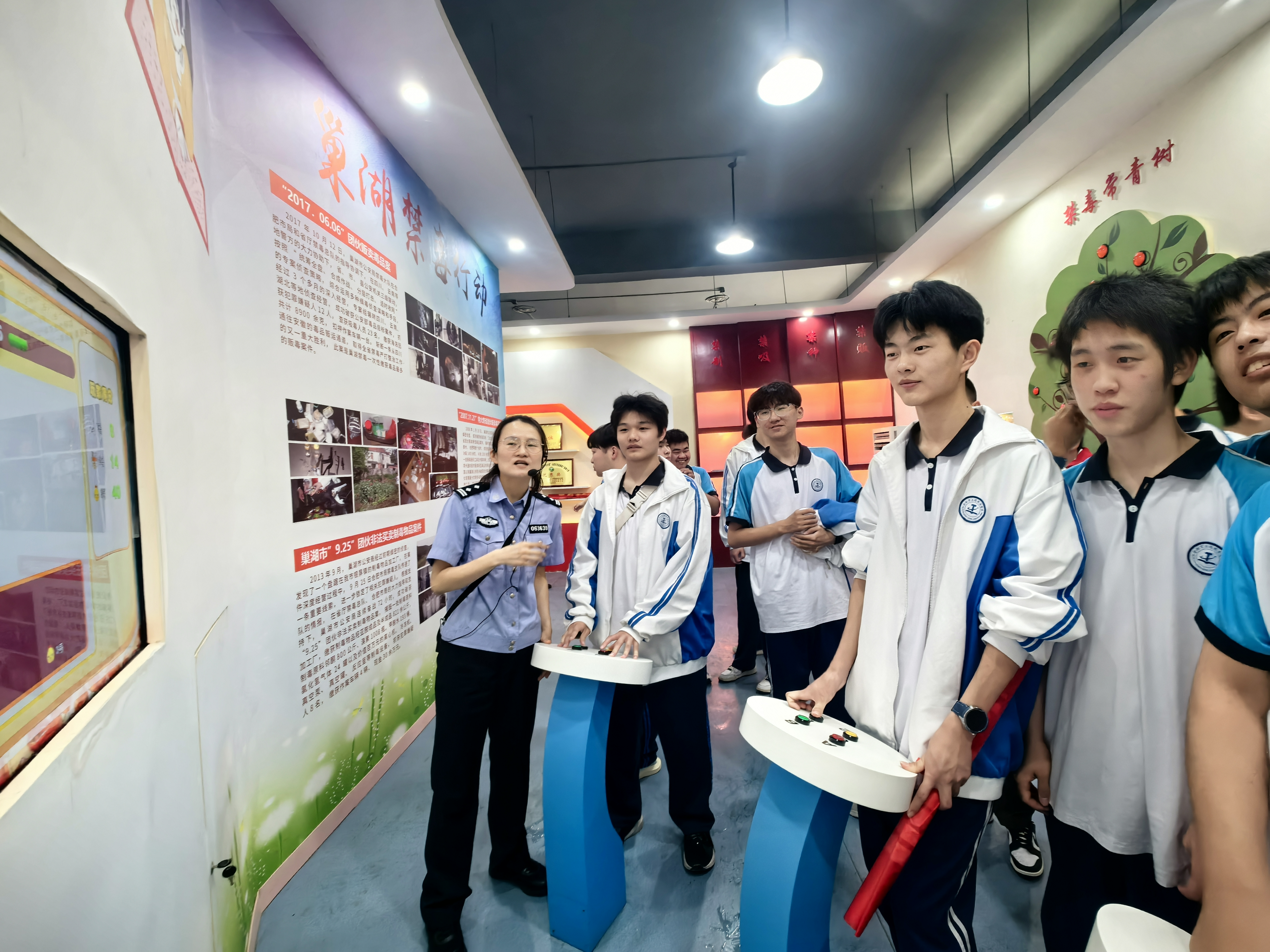 5月26日下午,mg冰球突破豪华版部分师生走进巢湖市禁毒教育基地,在"健康人生,绿色无毒"主题实践教育活动中开启了一场震撼心灵的禁毒认知之旅。这场沉浸式的教育体验,通过多维感官冲击与深度互动参与,在青年学子心中筑牢了防毒拒毒的思想防线。