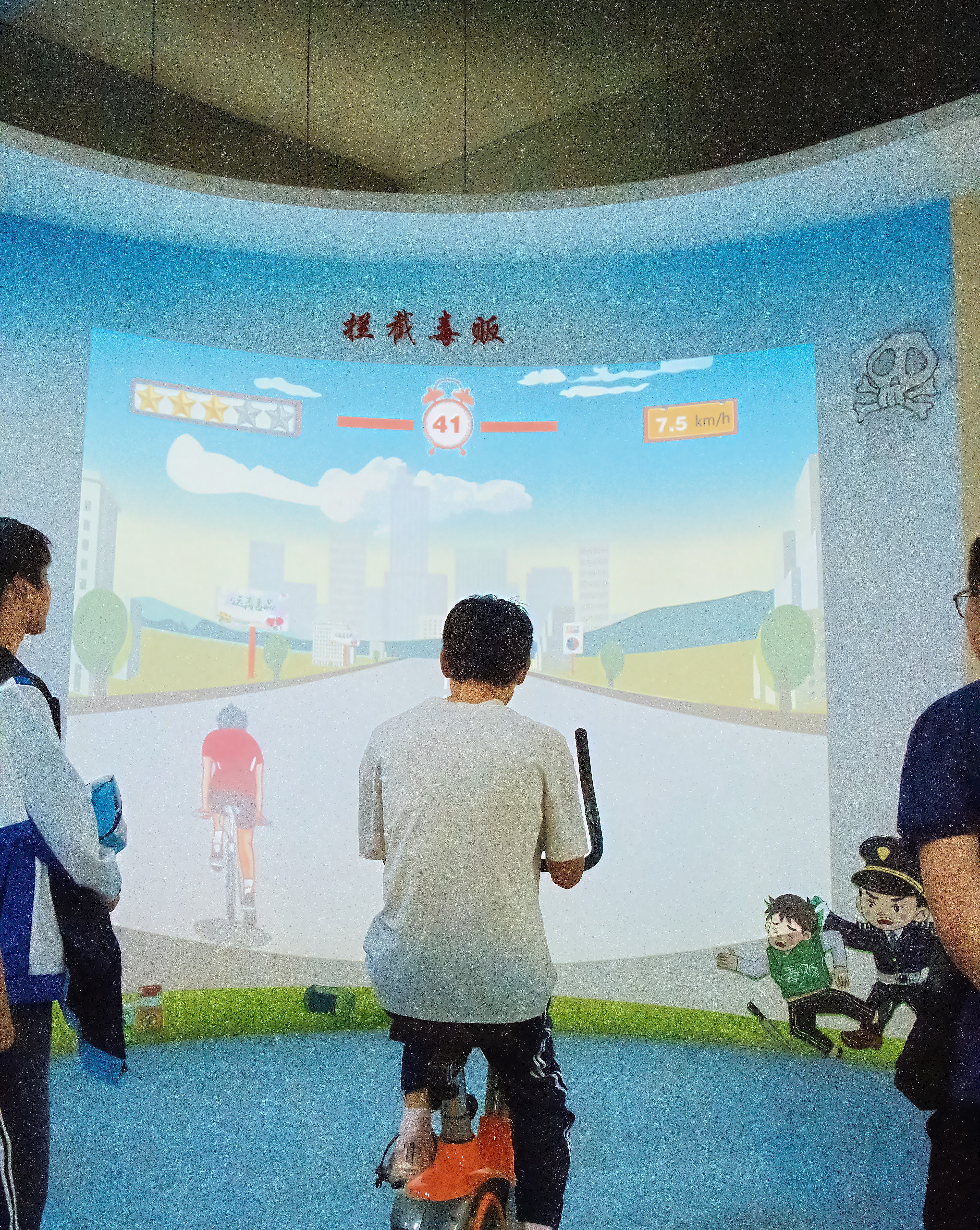 在基地讲解员的引导下,同学们有序进入展厅。展厅内,丰富多样的展品、详实的文字资料和触目惊心的案例展示,让同学们直观地了解了毒品的种类、危害以及禁毒工作的重要性。讲解员详细介绍了各种毒品的仿真模型以及危害,对鸦片、海洛因、吗啡等传统毒品和冰毒、摇头丸、K 粉、“奶茶类毒品”“邮票”等新型毒品进行了分类讲解,还穿插了禁毒教育影片的精彩片段,让同学们深入了解毒品的种类、危害及禁毒历史。同学们还积极参与了“毒驾模拟驾驶”等互动体验设备,逼真的场景模拟和互动体验设备让同学们直观感受到毒品对身心的摧残。特别是在“吸毒后的你”人脸变化模拟系统中,同学们看到吸毒后容貌的急剧变化,深受震撼。通过虚拟现实技术和视觉上的震撼及感官上的体验,有效引导了同学们自觉抵制毒品诱惑,共同守护“无毒”青春。