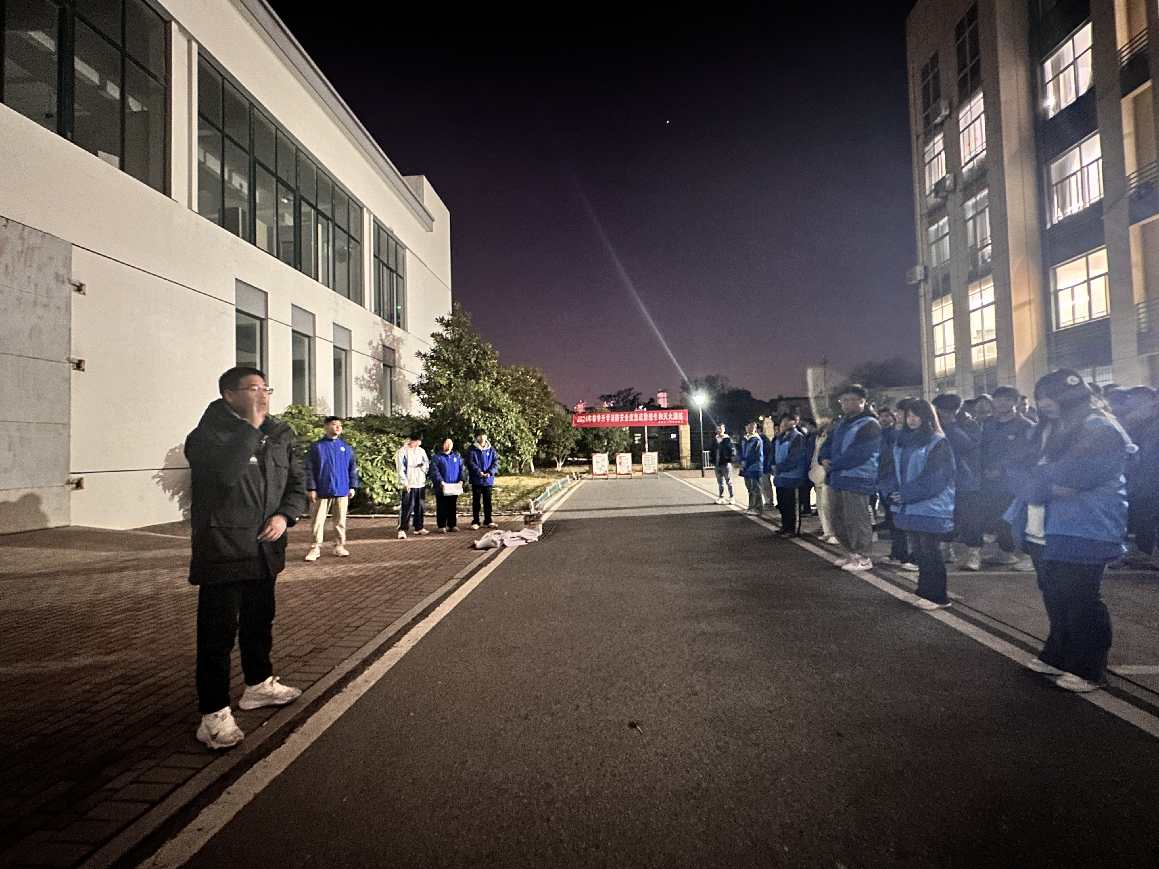 为进一步做好新学期消防安全工作,普及消防安全知识,增强消防安全意识,掌握正确的逃生和消防器材使用技能,3月20日晚间,我校政教处、总务处联合组织开展晚间消防安全应急疏散和灭火演练活动,本次活动由政教处郎玉志老师组织并给与讲解示范,学校寝室生活指导、各班主任及全体在校生分批参加,校长潘明参加活动。