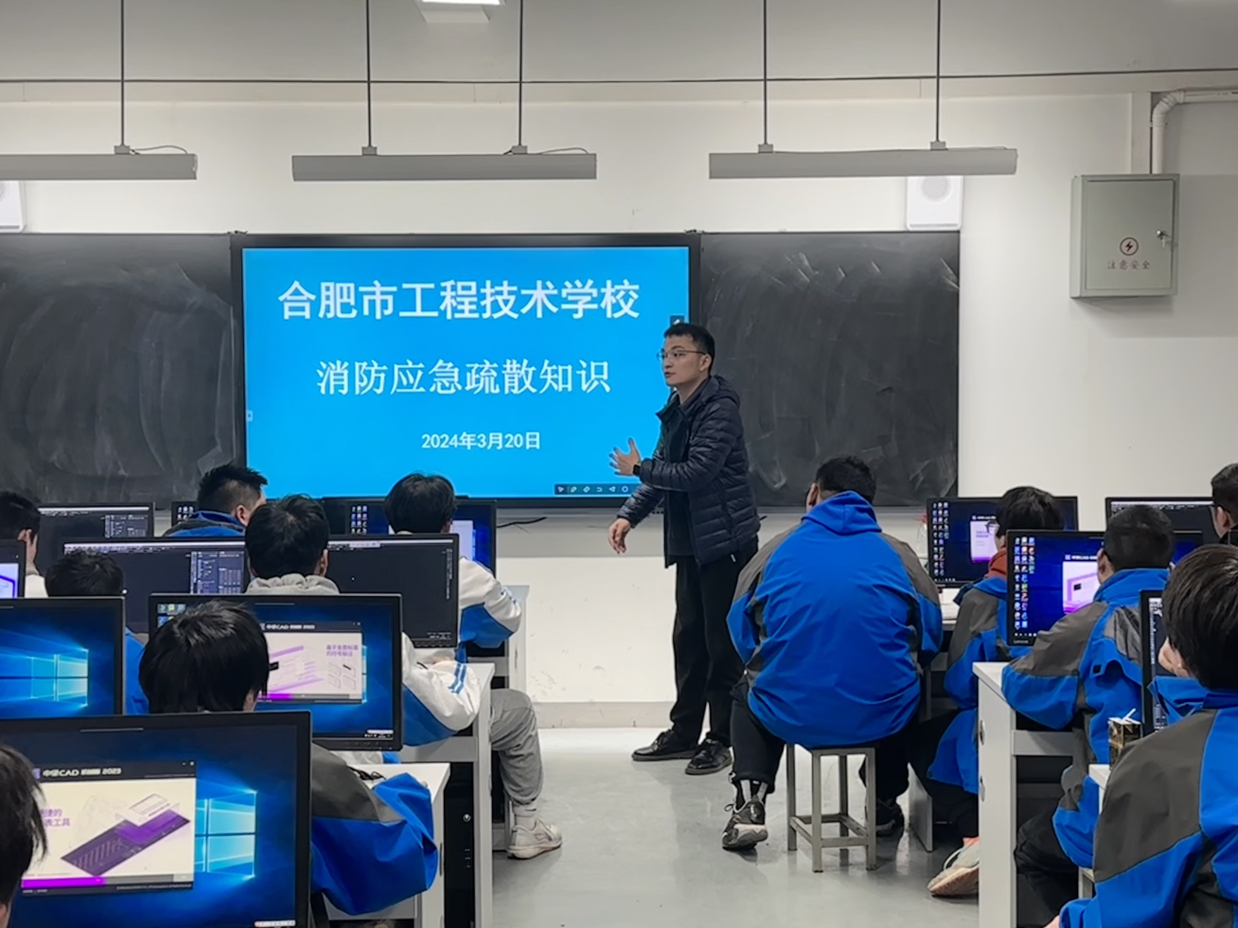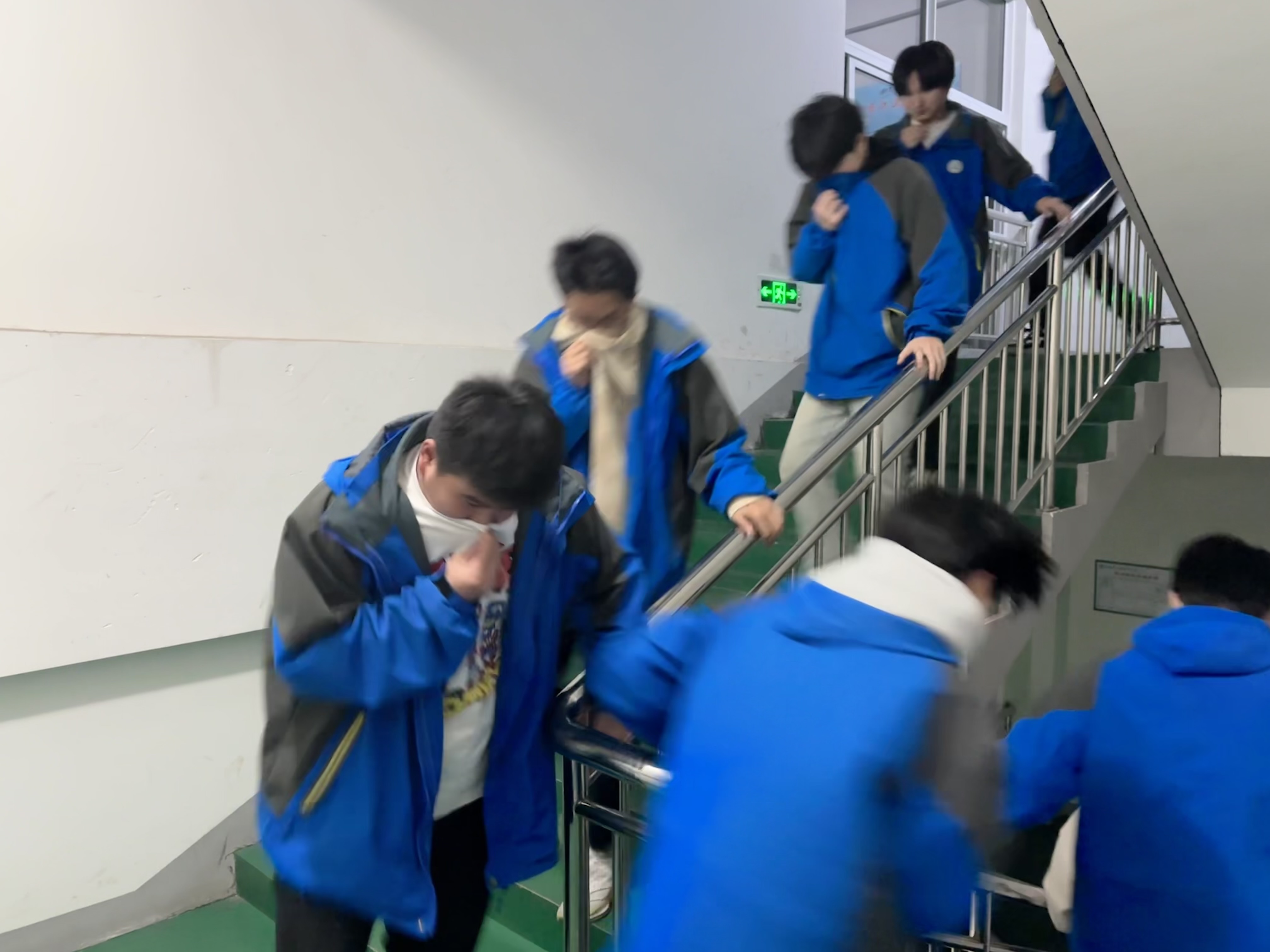 整个演练活动开始后,气氛紧张有序,所有参加演练的师生按预定方案认真演练,在听到演练信号的第一时间,纷纷从教室、实训室、宿舍进入楼道,放低身姿,掩住口鼻,沿着楼道疏散指示灯指引方向向指定安全区域疏散,疏散过程迅速而井然有序。