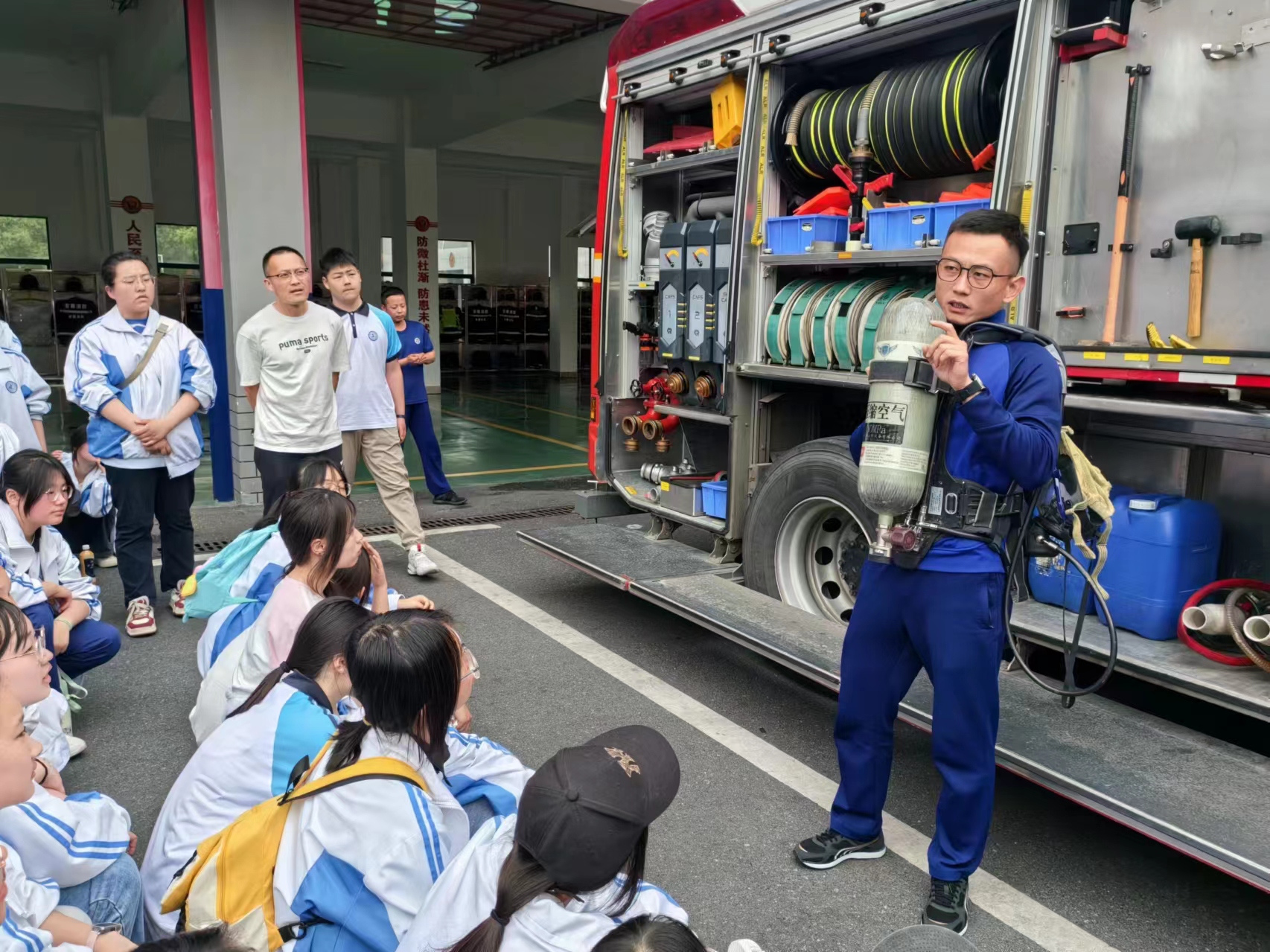 临近活动结束时,消防大队的张毅班长和政教处副主任陈军分别进行了总结讲话,说明了此次活动的意义所在。相信通过这次参观学习,同学们将更加珍惜生命,关注消防安全,为构建一个安全、和谐的校园环境贡献自己的力量。