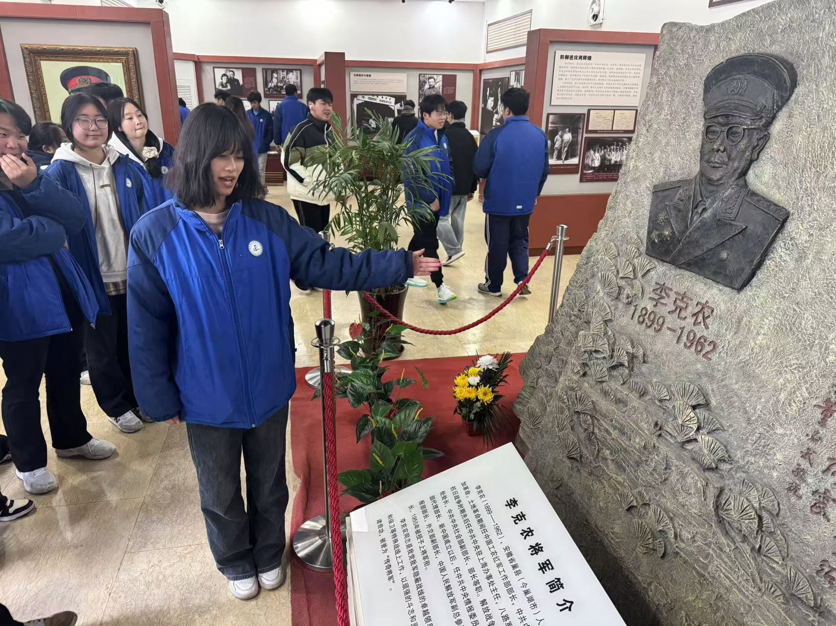 随后师生前往烔炀镇李克农故居和生平事迹展览馆,深切缅怀李克农将军的革命事迹。李克农将军是久经考验的无产阶级革命家、杰出的社会活动家、外交家,我党我军隐蔽战线的卓越领导者和组织者。在展览馆内,mg冰球突破豪华版下载旅游专业学生代表苏静怡、韩丽彤两位同学发挥专业优势,利用旅游专业课程所学习的技能为大家讲解李克农将军的生平事迹。同学们认真聆听了她们的生动讲解,对李克农将军的克己奉公、廉洁自律、生活简朴的革命精神和一生为共产主义信仰奋斗的传奇事迹表达了崇高的敬意。