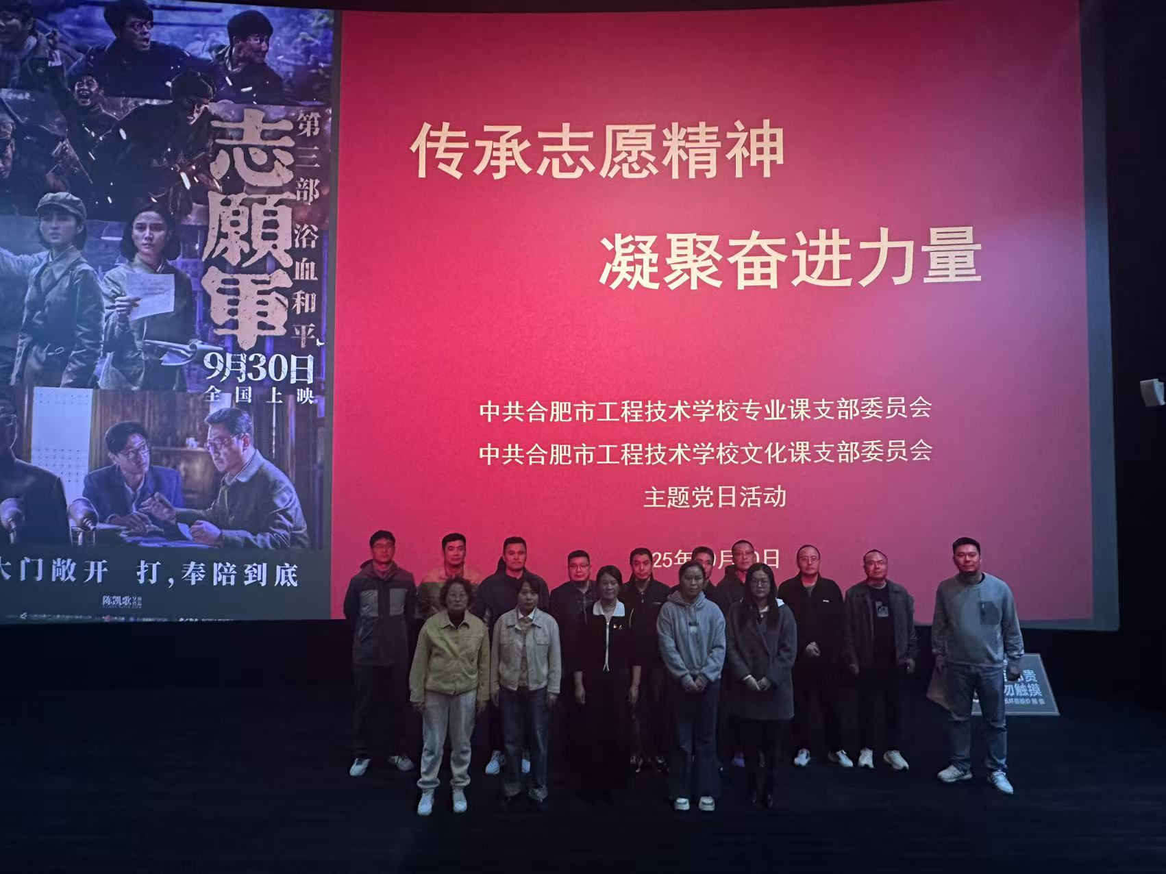 10月30日文化课党支部、专业课党支部组织党员赴巢湖万达电影院观看电影《志愿军:浴血和平》。