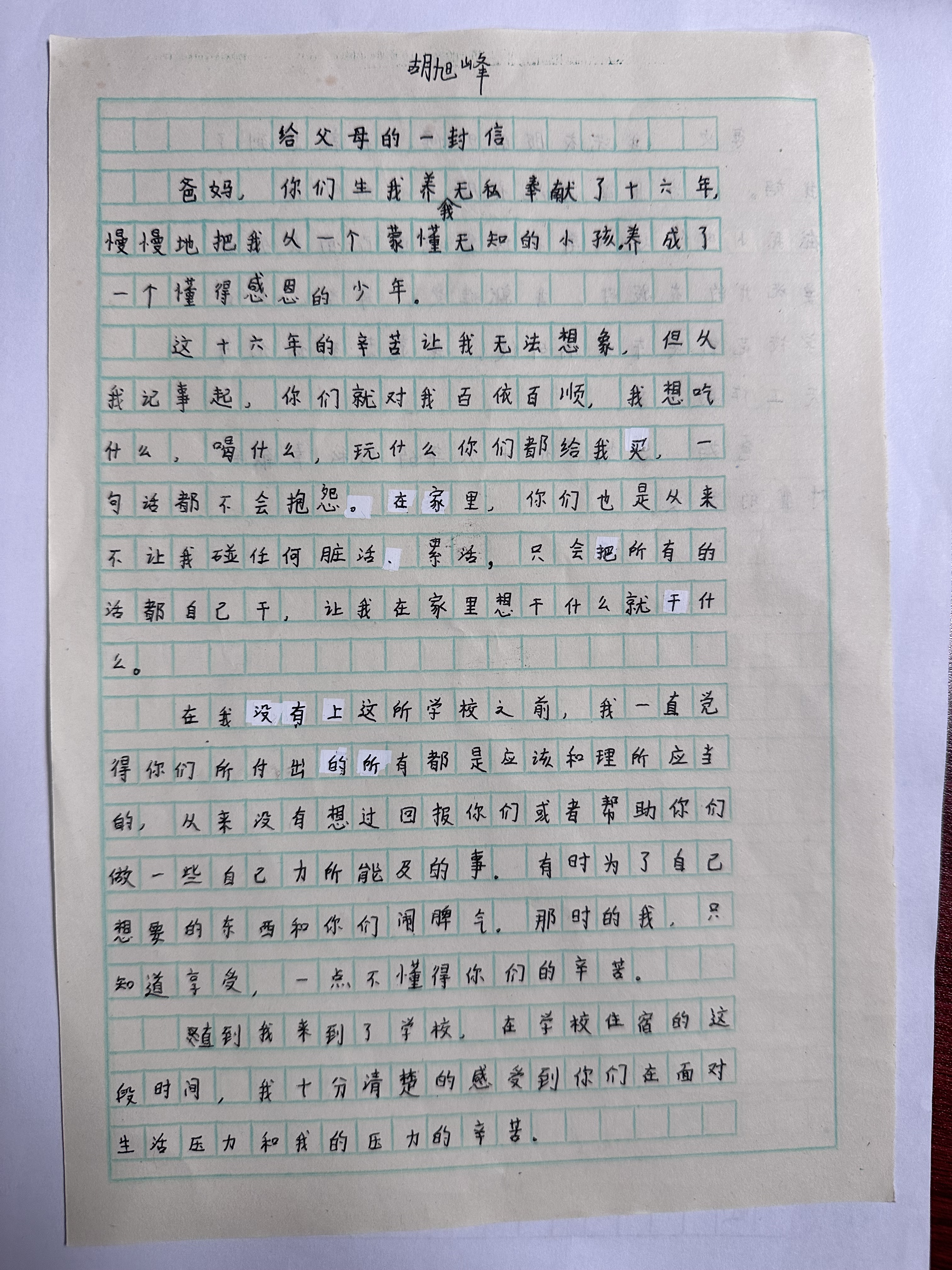 给父母写一封感恩信