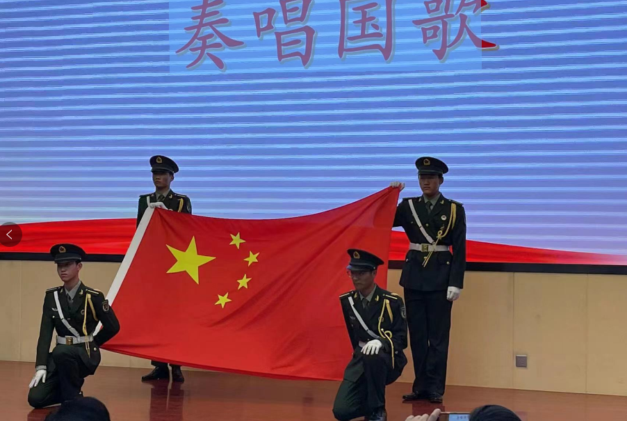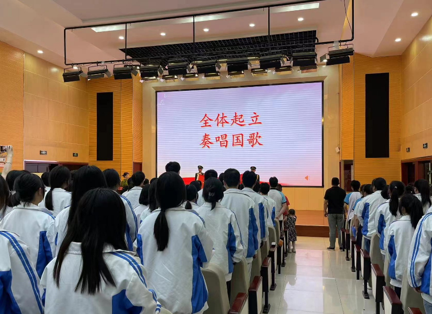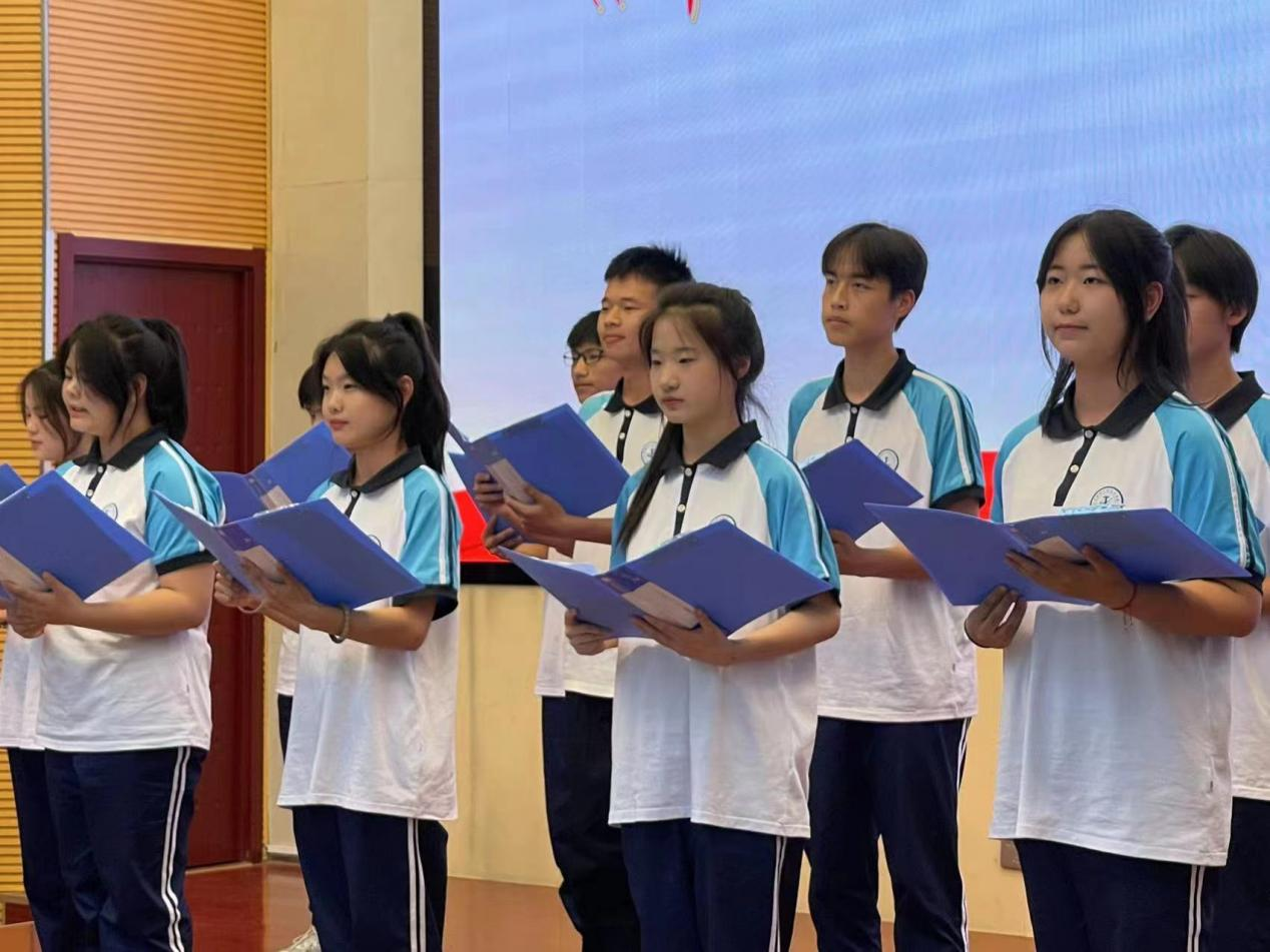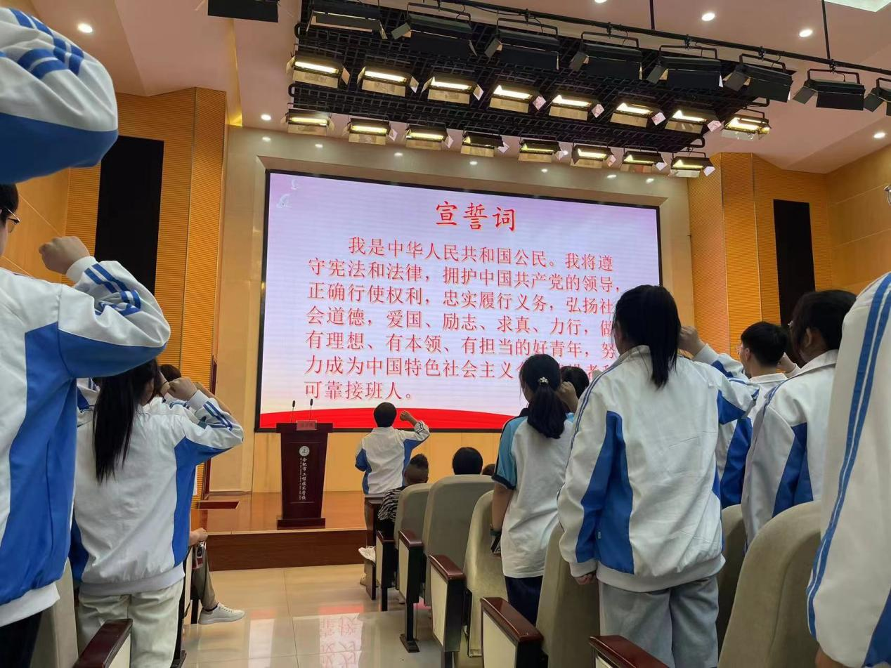典礼最后由优秀毕业生代表何嘉玮带领同学们面向国旗一齐宣誓:“我是中华人民共和国公民。我将遵守宪法和法律,拥护中国共产党的领导,正确行使权利,忠实履行义务,弘扬社会道德,爱国、励志、求真、力行,做有理想、有本领、有担当的好青年,努力成为中国特色社会主义合格建设者和可靠接班人。”
