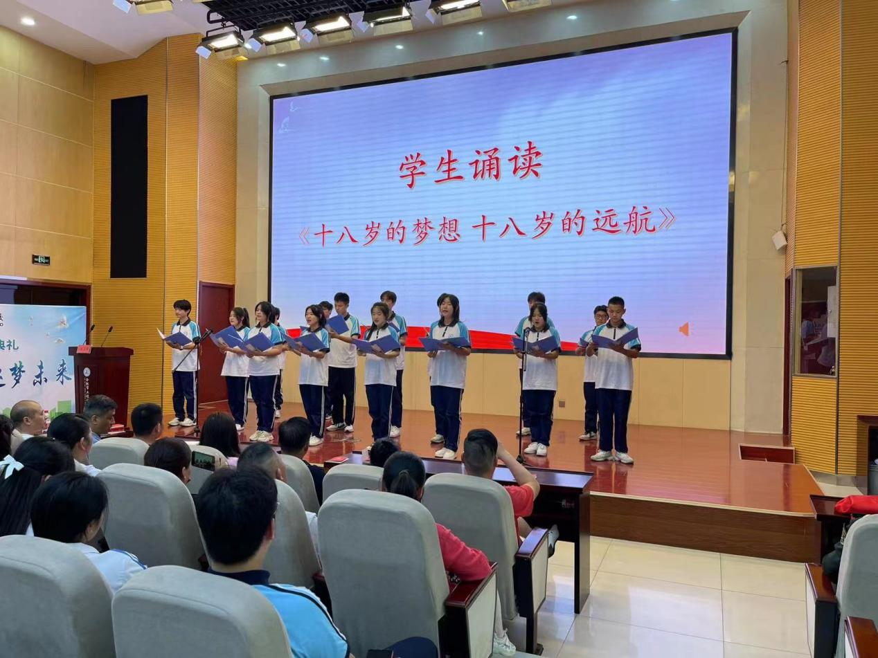 随后学生代表朗诵了诗歌《十八岁的梦想,十八岁的远航》,表达了他们无畏挑战、勇担责任,为了梦想努力奋斗的坚定信念与决心。