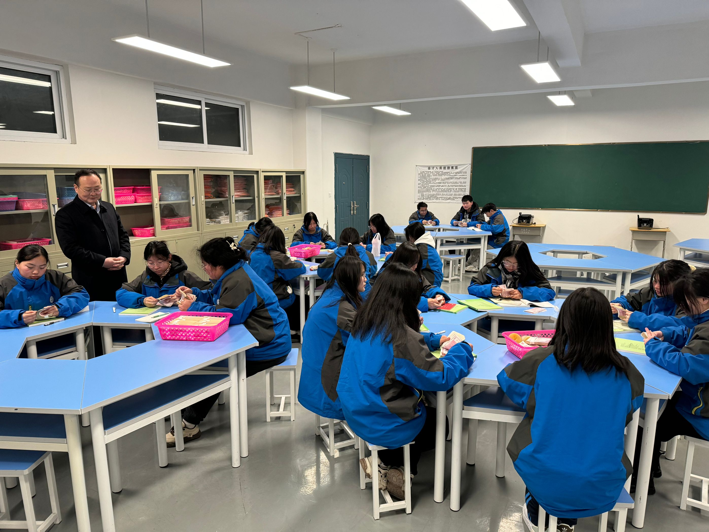学习地点变了。按照教室、实训室“应开尽开”,其他场所“能开尽开”的原则,开放所有应开能开的场所设备。晚自习地点由各班教室,拓展到计算机房、电商实训室、制图实训室、会计电算化实训室、酒店服务实训室、导游讲解实训室、汽车实训室……实现了校内实训场所和设备开起来、亮起来、转起来。