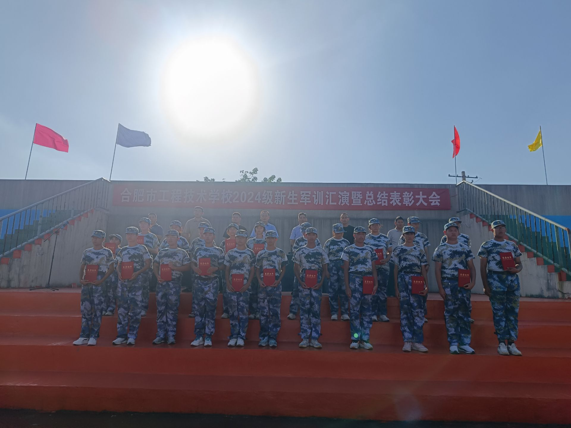总结会上,校长潘明宣读了《关于表彰2024级新生军训优秀标兵的决定》。他希望受表彰的同学继续发扬成绩,戒骄戒躁,不断进取;希望全体同学向先进看齐,奋发向上,奋力书写人生的精彩华章。随后,与会领导为荣获表彰的同学们颁奖。24会计3班向婉婷同学作为军训优秀标兵代表发言,抒发了对于军训的深刻体会;政教处主任陈军宣读军训期间学生违纪处分决定。