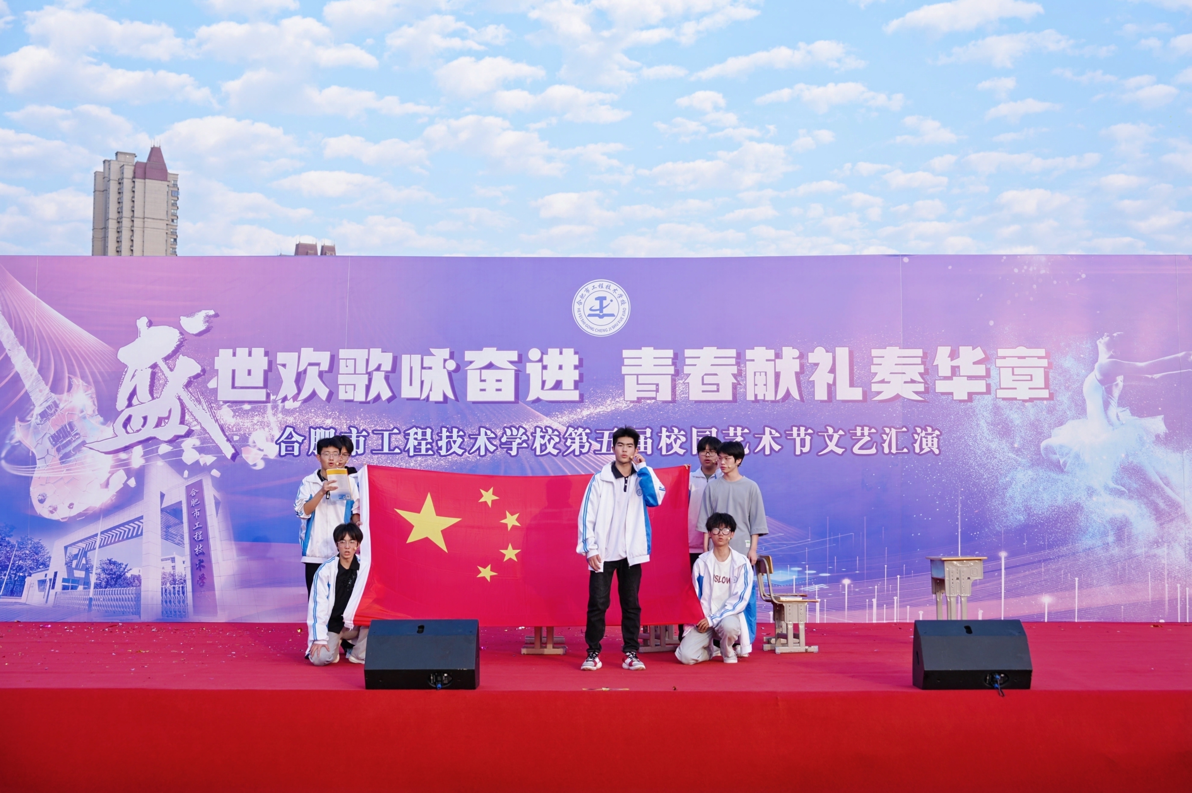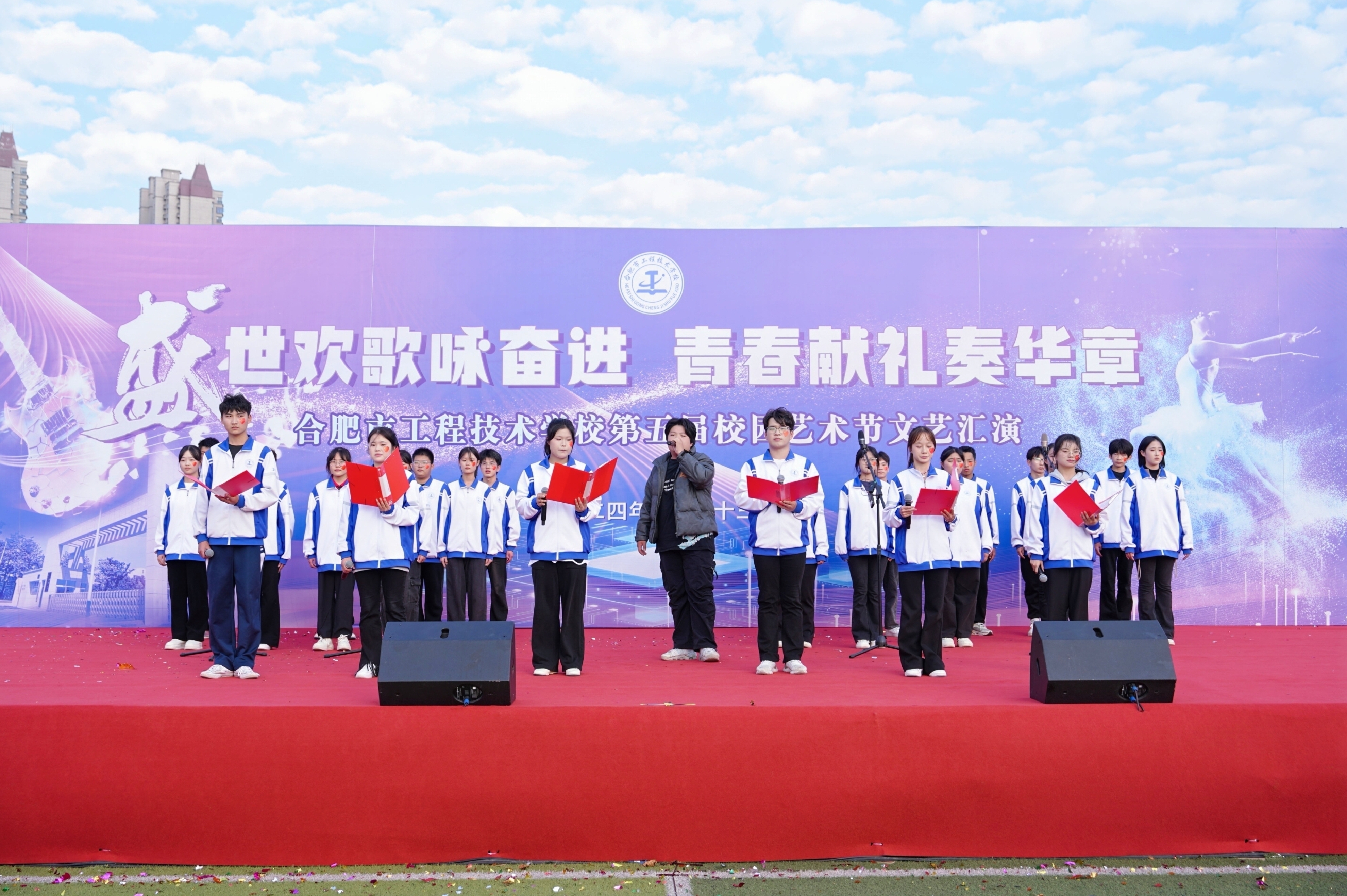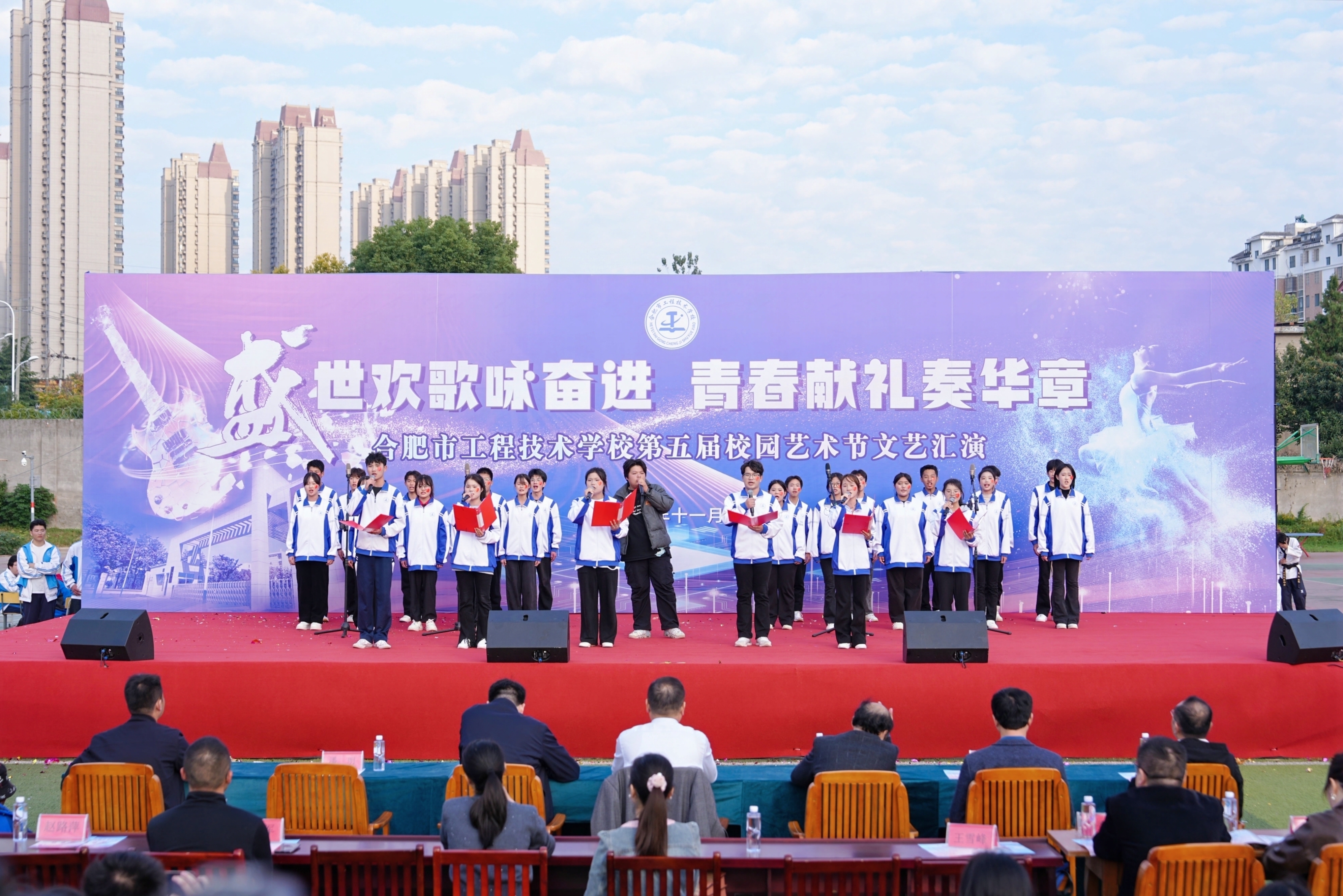 为全面落实立德树人根本任务,充分发挥文艺活动在提高学生人文素养方面的独特作用,以美育人,以文化人,展现mg冰球突破豪华版下载学子的家国情怀和青春风采,营造文明高雅、奋发向上的校园文化氛围。11月13日下午,mg冰球突破豪华版下载隆重举办第五届校园艺术节文艺汇演,本届校园艺术节主题为“盛世欢歌咏奋进,青春献礼奏华章”全校师生齐聚运动场共飨艺术盛会,莅临本次活动现场的领导有巢湖市第一中学校长刘德海,巢湖市第二中学校长何学宝,巢湖市第四中学党委书记张志华,mg冰球突破豪华版下载党委书记王成满,mg冰球突破豪华版下载校长潘明,以及mg冰球突破豪华版下载各处室负责人。