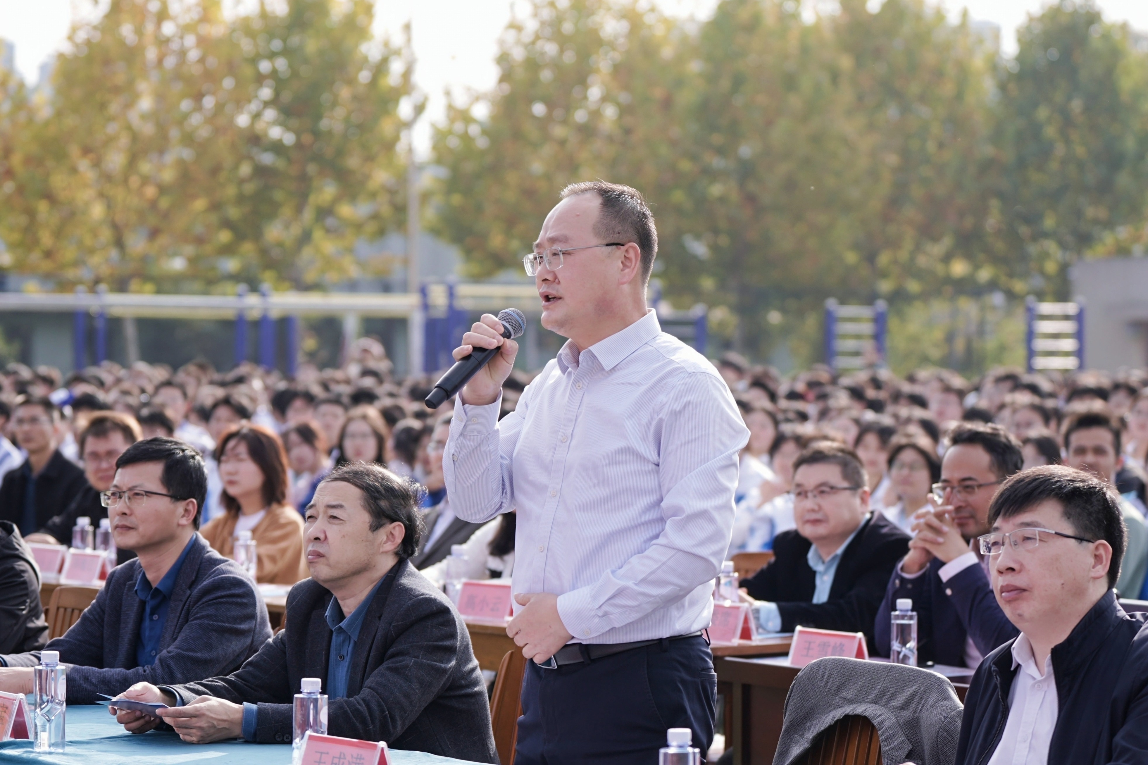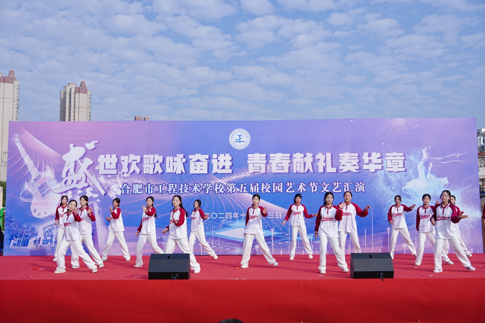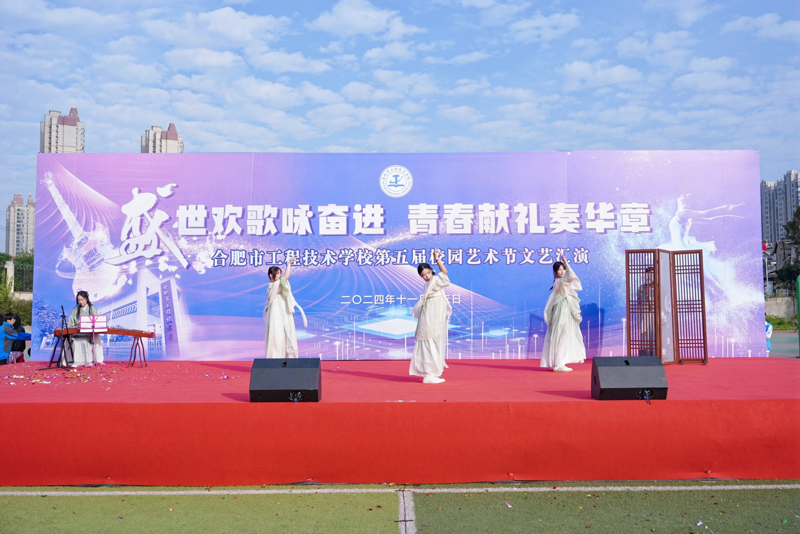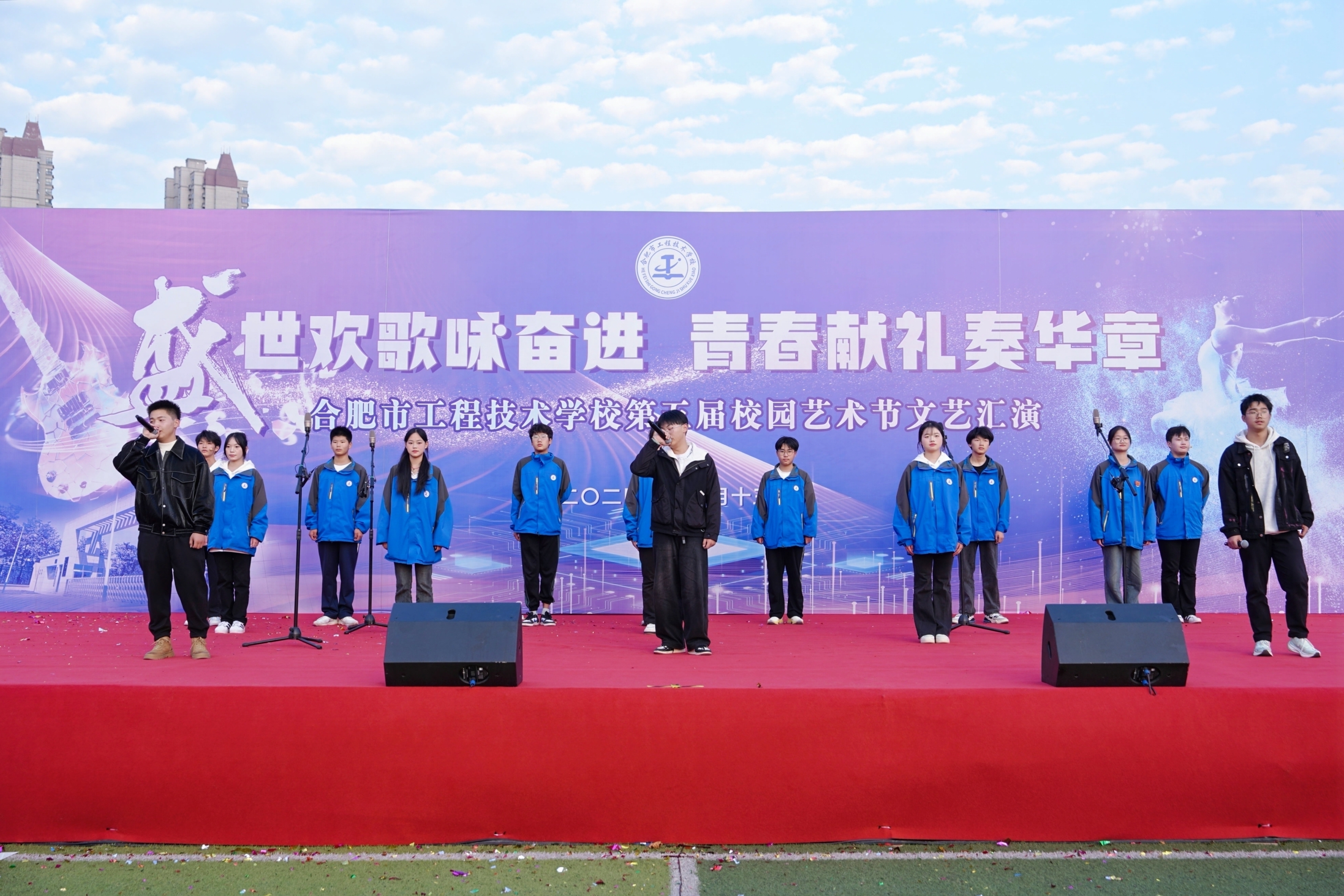 为全面落实立德树人根本任务,充分发挥文艺活动在提高学生人文素养方面的独特作用,以美育人,以文化人,展现mg冰球突破豪华版下载学子的家国情怀和青春风采,营造文明高雅、奋发向上的校园文化氛围。11月13日下午,mg冰球突破豪华版下载隆重举办第五届校园艺术节文艺汇演,本届校园艺术节主题为“盛世欢歌咏奋进,青春献礼奏华章”全校师生齐聚运动场共飨艺术盛会,莅临本次活动现场的领导有巢湖市第一中学校长刘德海,巢湖市第二中学校长何学宝,巢湖市第四中学党委书记张志华,mg冰球突破豪华版下载党委书记王成满,mg冰球突破豪华版下载校长潘明,以及mg冰球突破豪华版下载各处室负责人。