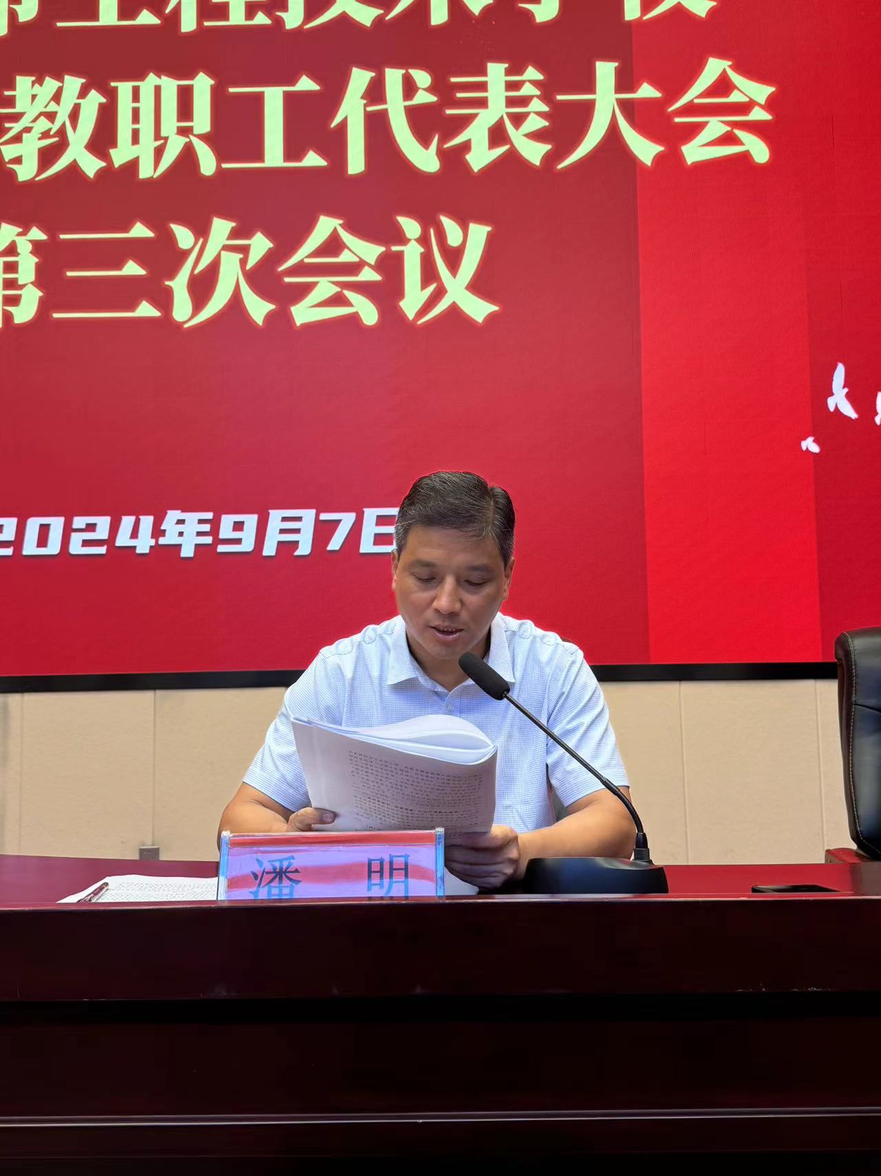 9月7日,mg冰球突破豪华版第二届教职工代表大会第三次会议,在学校多功能报告厅胜利召开,37名教职工代表出席本次大会,6名中层以上干部列席会议。会议由第二届教代会执行委员会主持。