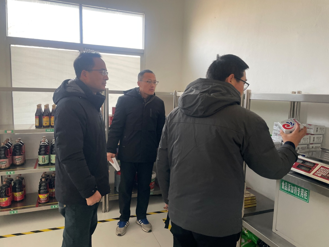 会后,检查人员深入食堂后厨、仓库、清洗加工等区域,实地检查设备运行、卫生消杀、食材保质期及留样管理情况。在检查中潘明要求全体人员以“时时放心不下”的责任感,将食品安全文件精神及各项制度转化为具体行动,重点排查防鼠设施漏洞及后厨操作隐患。他强调,“食品安全无小事,任何环节失守都是对师生的不负责任!”