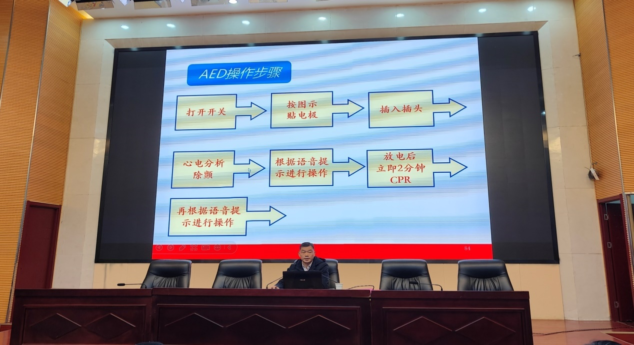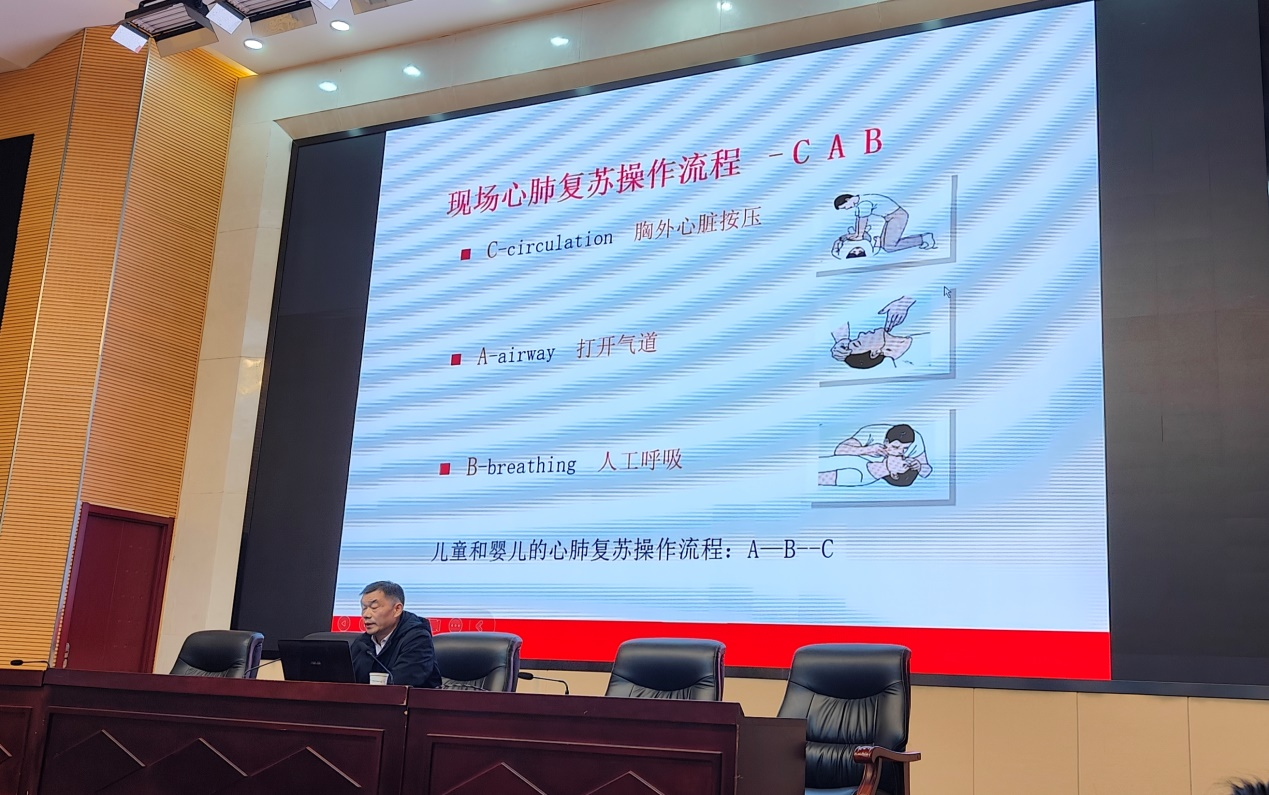讲座现场,陈老师以通俗易懂的语言、真实鲜活的案例,深入浅出地讲解了心肺复苏(CPR)的操作方法、自动体外除颤器(AED)的使用、海姆立克急救法等应急救护知识和技能。