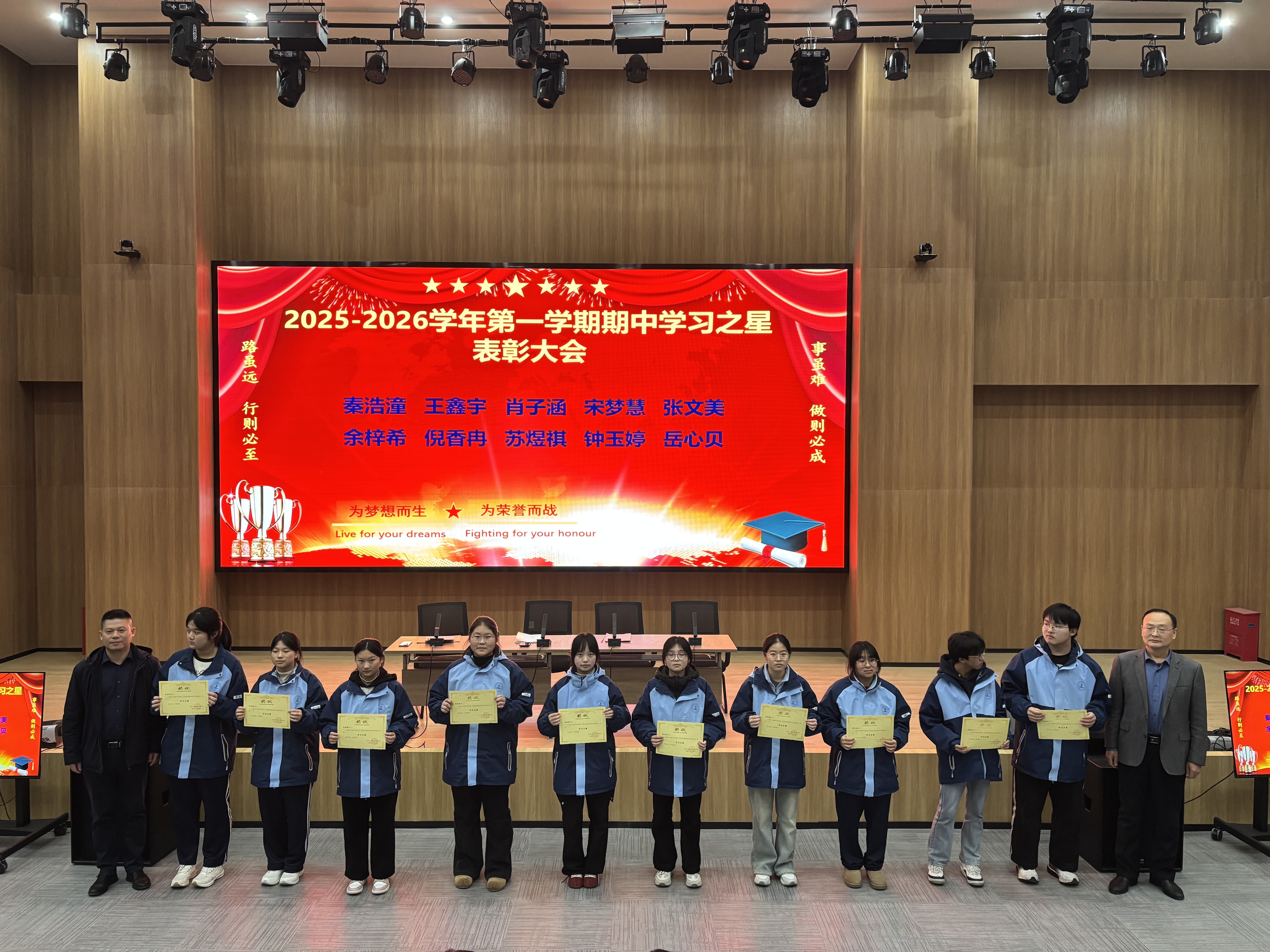 随后,家长代表与教师代表共同为期中表现优异的学子颁奖。这一环节不仅在校园中营造了以先进为镜、向榜样看齐的浓厚学风,更以实际行动筑牢了家校沟通的坚实桥梁,让共育力量更加凝聚。