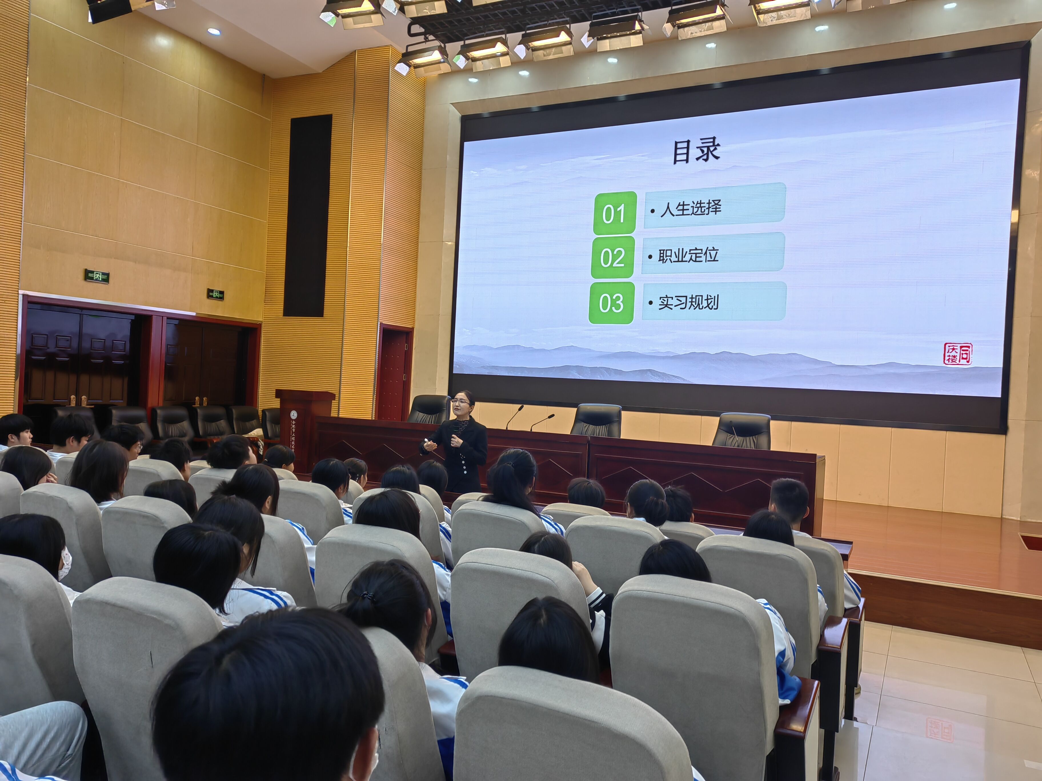 同庆楼餐饮股份有限公司人力资源部总监琚禾荣,从人生选择、职业定位、实习规划三个方面对就业——定位定人生的主题进行了剖析,并联系学生在同庆楼实习、就业中的实际情况进行了细致的讲解,同学们受益匪浅,对同庆楼的实习与就业充满了美好的憧憬。