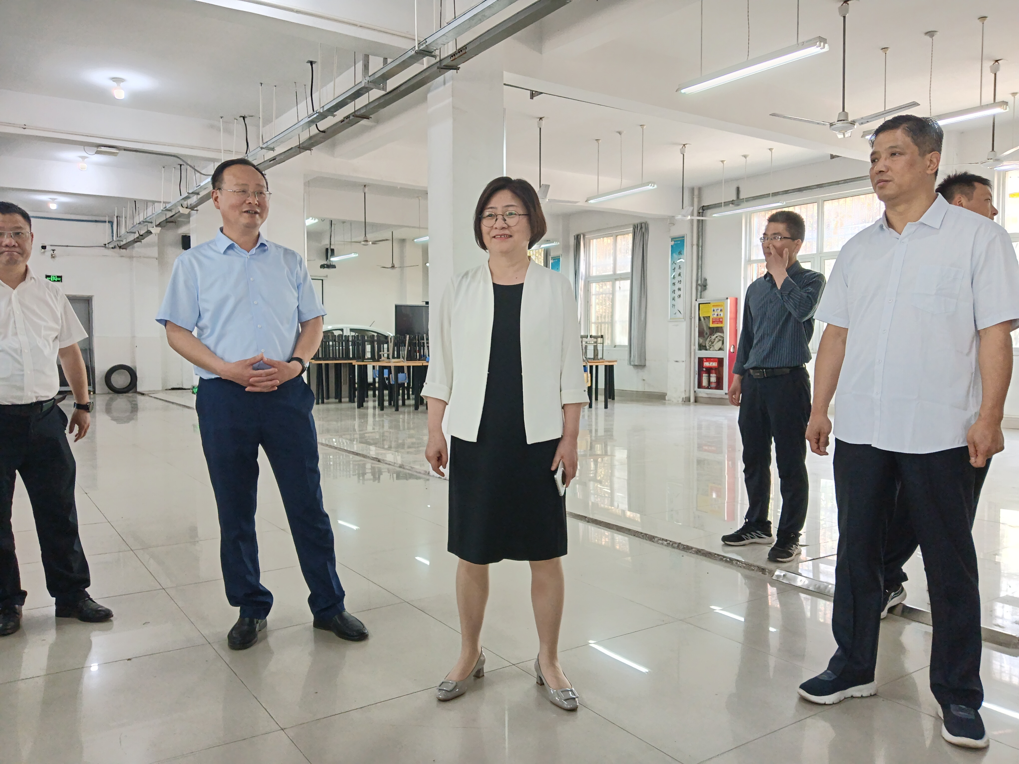 彭桂贞一行在校领导的带领下参观了学校汽车实训室、工业机器人实训室等,同时,就专业建设、教学管理、教学资源共享等方面进行了探讨并交换了意见。彭桂贞对学校环境和教育教学管理给予了高度评价,她表示,要将中职教育与高职教育紧密相连,为学生提供连续学习的机会,铺设一条更加宽广的发展道路,培养出既有理论基础又有实践能力的复合型人才。