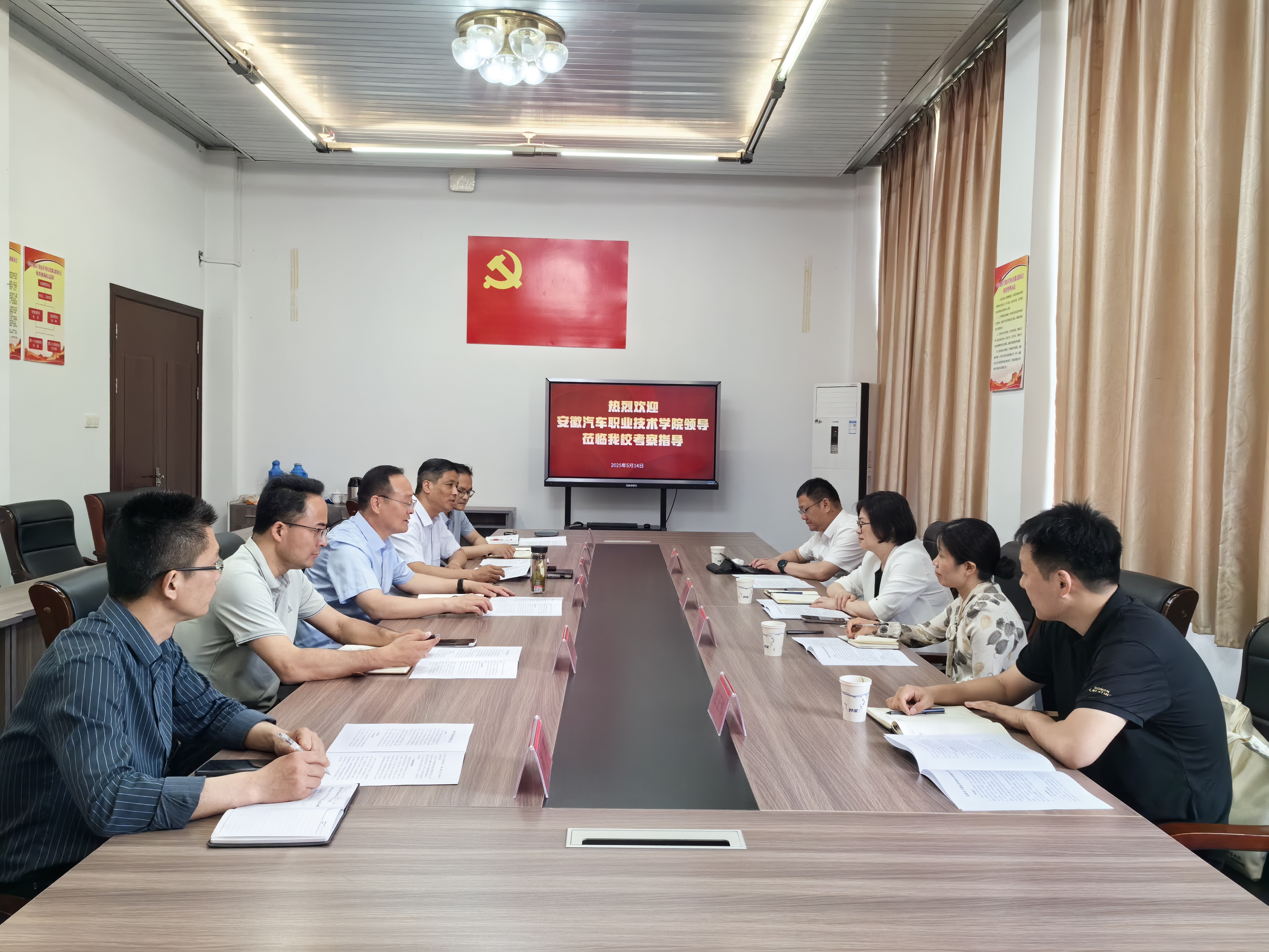 为加强院校合作,合力培养高素质技能人才,5月14日,安徽汽车职业技术学院党委书记彭桂贞一行到mg冰球突破豪华版开展调研交流。mg冰球突破豪华版党委书记王成满、校长潘明及相关处室负责人热情接待并参与交流座谈。